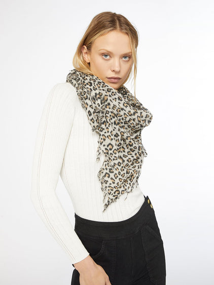 This cheetah-print fringe scarf will liven up any outfit. Wear yours looped around your neck or draped over your shoulders to ward off chill.