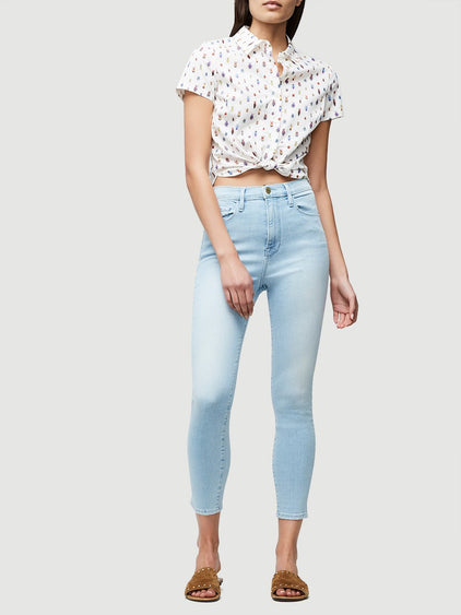 Ultra High Rise Skinny Jean. Crafted From Super Stretch Premium Denim In A Faded Wash. Cigarette Fit Through Leg To Hem.