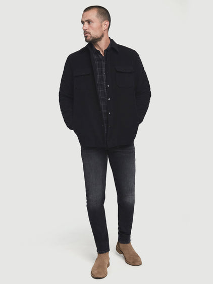 Cut from soft moleskin, this clean cut shirt jacket is a versatile hero piece. With clean lines, double flap heck pockets, and a quilted interior wear yours on its own or as a top layer to shirts, tees, and knits.