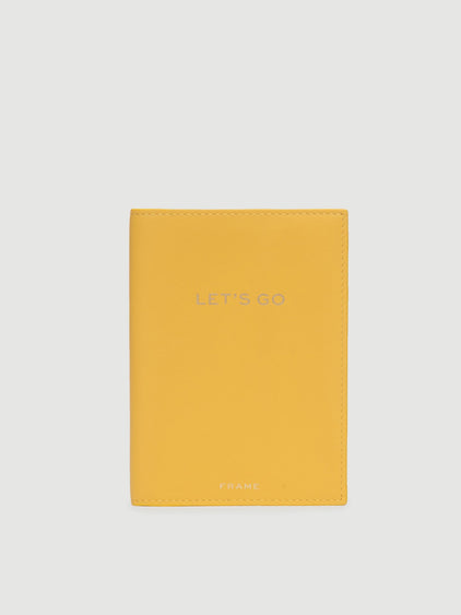 Protect your passport with this double slit envelope pocket wallet, featuring the signature FRAME embossed logo and a "Let's Go" slogan.