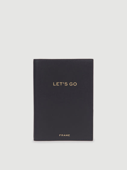 Protect your passport with this double slit envelope pocket wallet, featuring the signature FRAME embossed logo and a ""Let's Go" slogan.