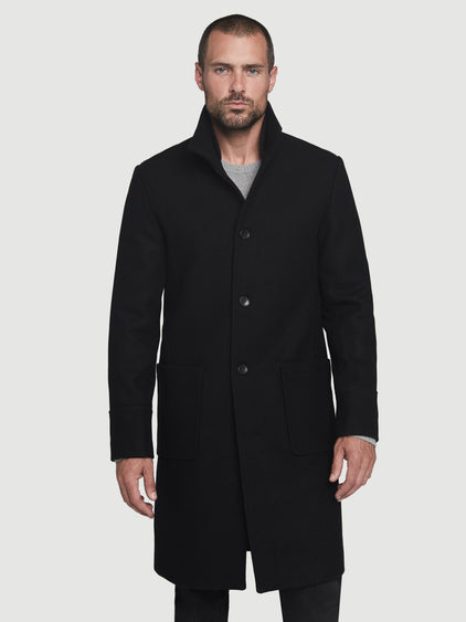 Clean lines and a ribbed interior collar give this classic overcoat a modern feel. With front patch pockets and buttons down the front, itβs a timeless addition to any wardrobe.